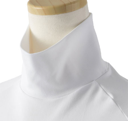首の日焼けを防ぐ顎下までのロングタートル、ハイネックシャツ。